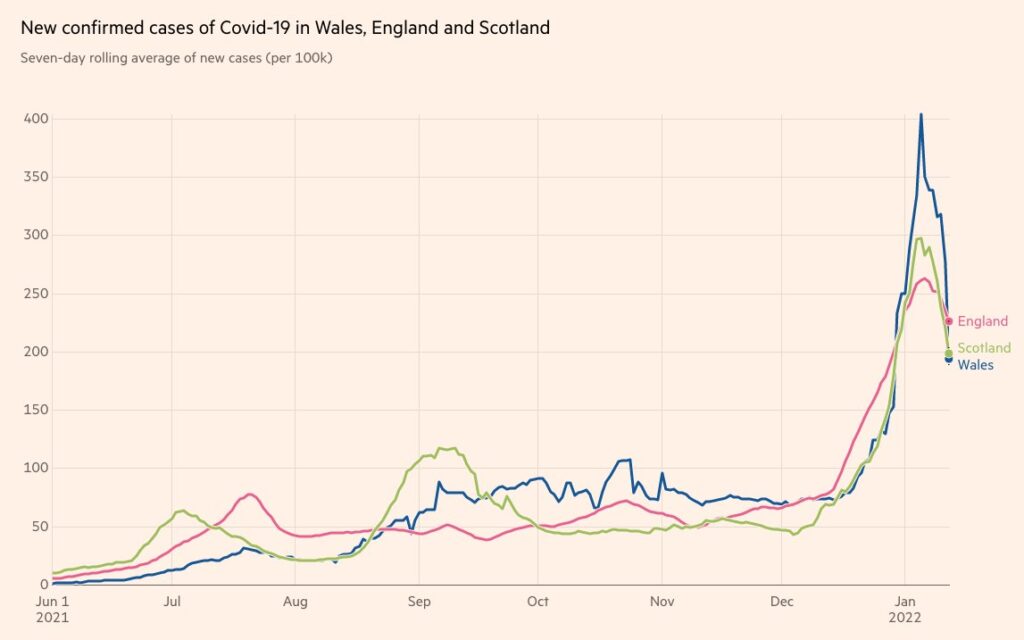 Stop Press: Welsh First Minister Mark Drakeford has done a U-turn, announcing that all Covid restrictions will be lifted in Wales in two weeks in spite of describing England as an “outlier” last week because it had fewer restrictions than Wales. MailOnline has the story.