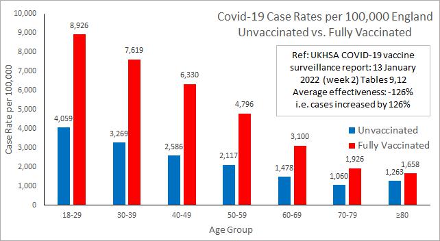 Why does she refer to ‘vaccinated’? Surely she means the boosted, as the vaccine protection wanes to nothing after approximately 6 months. And that includes hospitalisations/deaths — we’d see this more clearly if they only released the data. Of course, the benefits of regular boosters are only clear if you restrict your analysis to covid itself — the situation is far less clear if you include side effects, and even more so if you accept that we still don’t know the full nature of the impact of the vaccines on health — for example, emergency hospitalisation for stroke is up 25% since vaccination started, compared with the pre-covid average. Is this a vaccine issue? We just don’t know. But, just as with collapsing footballers you’d think that they’d at least investigate the situation — instead they’ll probably blame the increase in strokes on climate change. The big problem though is that vaccination appears to increase the risk of infection with covid — thus covid will probably remain at relatively high levels in highly vaccinated countries (such as the UK) until this effect itself wanes, and that might take years; if we’d only vaccinated the most vulnerable we’d have had comparable… Read more »