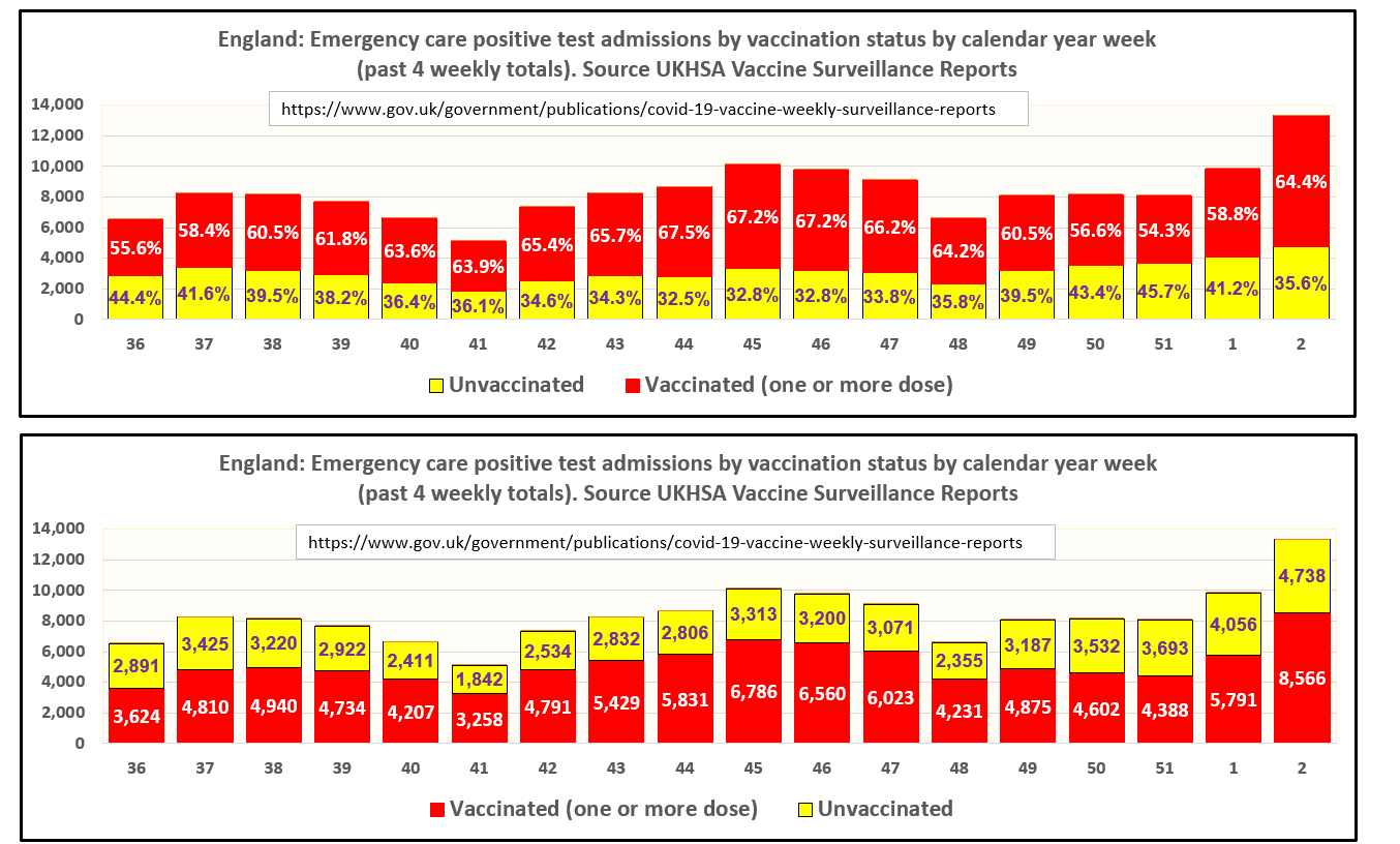 I’ve shown the same chart twice with vaccinated and unvaccinated as the top bar respectively in the top and bottom chart. But I’ve changed the label on the lower chart to show the numbers rather than percentages. But otherwise the same chart.
