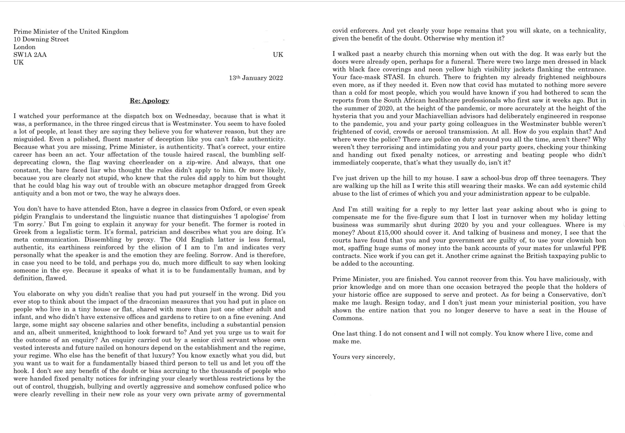I’m not entirely sure what the lessons are, but speaking as a boomer with all the apparently negative connotations that brings with it, I know that when I look at the black and white photographs of my parents and grandparents, and see the clearly visible and genuine austerity they lived with during the 40s, 50s and 60s, I ask myself how our once great nation has come to this, and what lies in store for as yet unborn generations. Anyway I wrote to the PM yesterday to express my displeasure. He won’t have received my letter yet, and I know it’s ill mannered to make it public, but I doubt if he cares.