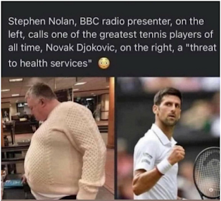 “Anyone who believed Djokovic was more of a threat to public health than any of the thousands who would pay to watch him play is an idiot.” and “and, more importantly, he doesn’t have any Covid to transmit.”