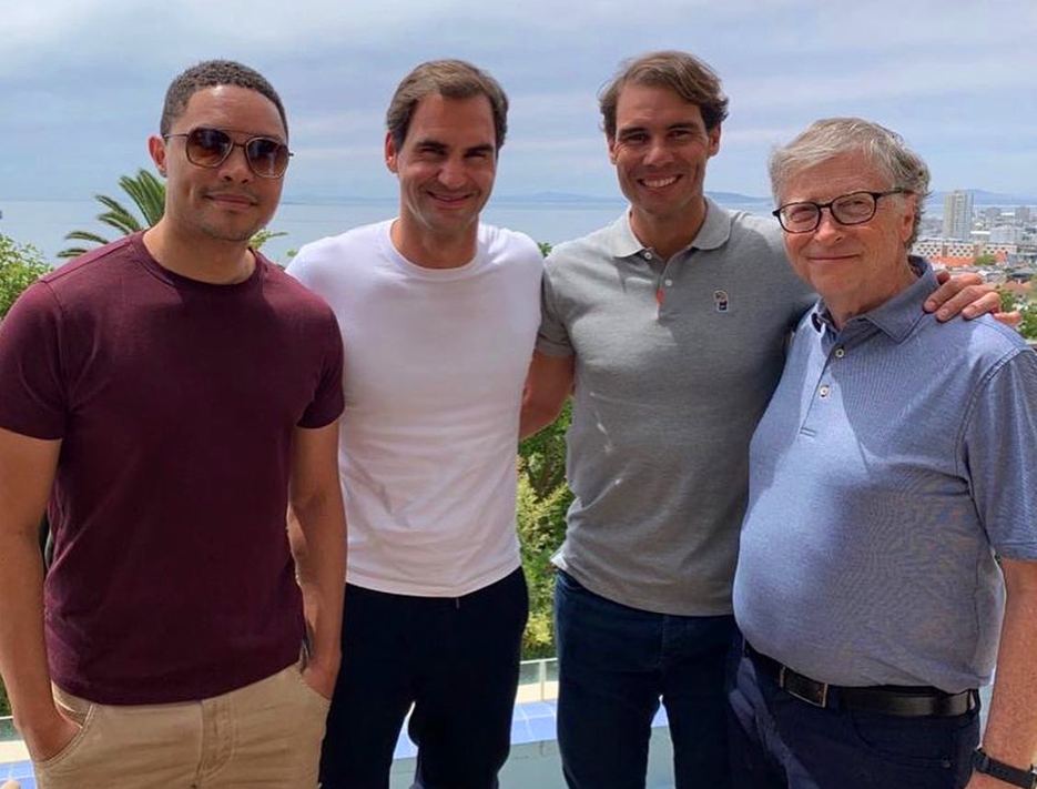 So gentleman Roger a stalwart WEF Young Global Leader since 2010, and his buddy Nadal stand shoulder to shoulder with global overlord and health expert Gates.
