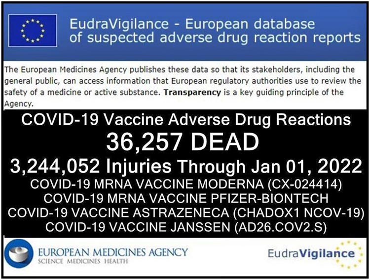 - VAERS – the American version of the Yellow Card reporting system – released new data on January 13th bringing the total to 1,033,994 reports of adverse events following Covid vaccines, including 21,745 deaths and 170,446 serious injuries.