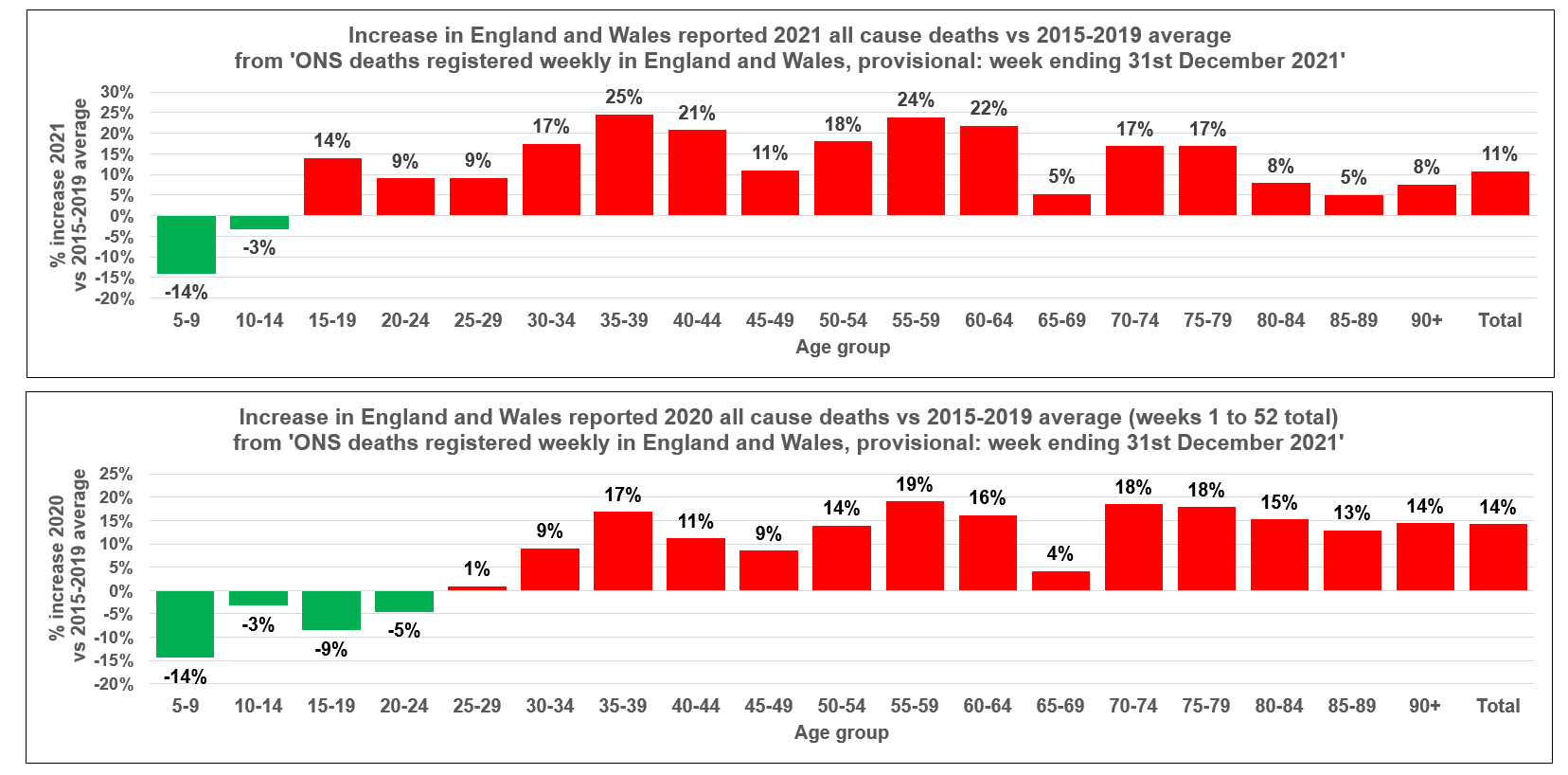In recent months, a trend has been noted in the England and Wales all-cause mortality data, which has rung some alarm bells. Young males aged 15-19 have shown a rising death rate compared to the five-year average 2015-2019. At the same time, a large insurance company in the U.S. has reported a significant increase in deaths in the under 40s. This is obviously of concern, whatever the cause, but one possible factor which needs to be urgently excluded is any link to vaccine injury. The association between myocarditis and the mRNA vaccines, especially in younger age groups and in males, is already well established. It is particularly urgent as second doses and boosters are being rolled out, possibly putting adolescents at even higher risk, and at a time when the Omicron variant is much milder.
