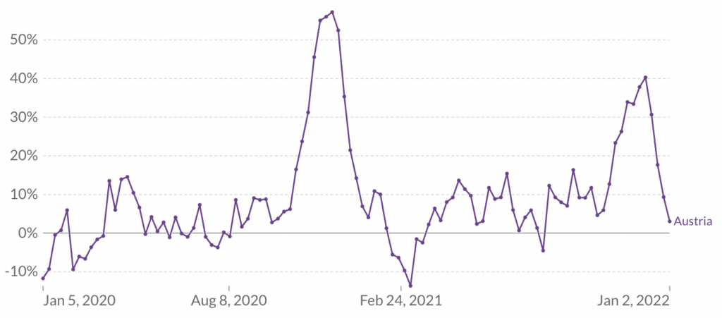 First, Austria saw a large uptick in excess mortality, beginning in mid October. At this time, 62% of the population was double vaccinated, including a much higher percentage of the elderly.