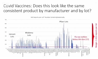 VAERS reports fluctuate wildly between batches. Either the manufacturing process is being significantly altered batch to batch or they are using different ingredients. There is no other benign explanation. Yeadon says he can prove this in court if need be.