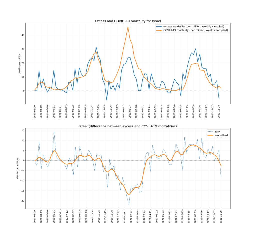 Below are the separate charts for the nine countries used in the above analysis, plus other Western European countries and Israel that report excess deaths weekly. As can be seen, all of them show the same pattern to a greater or lesser extent. I will post an update to this article once further data from the winter is in.