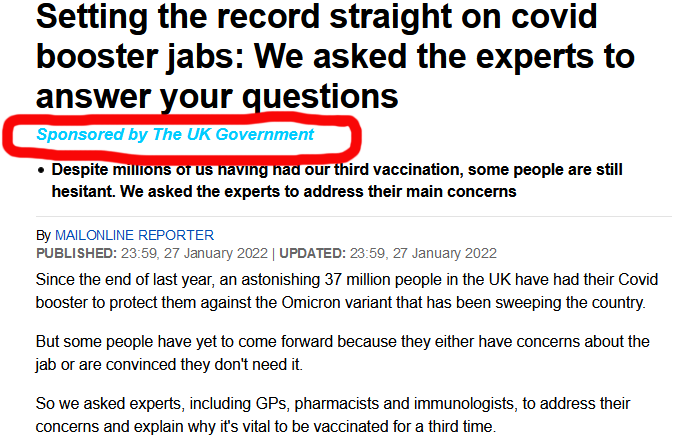 Check out this delightful piece of Government propaganda in the Daily Mail: https://www.dailymail.co.uk/news/article-10447327/Setting-record-straight-covid-booster-jabs-asked-experts-answer-questions.html