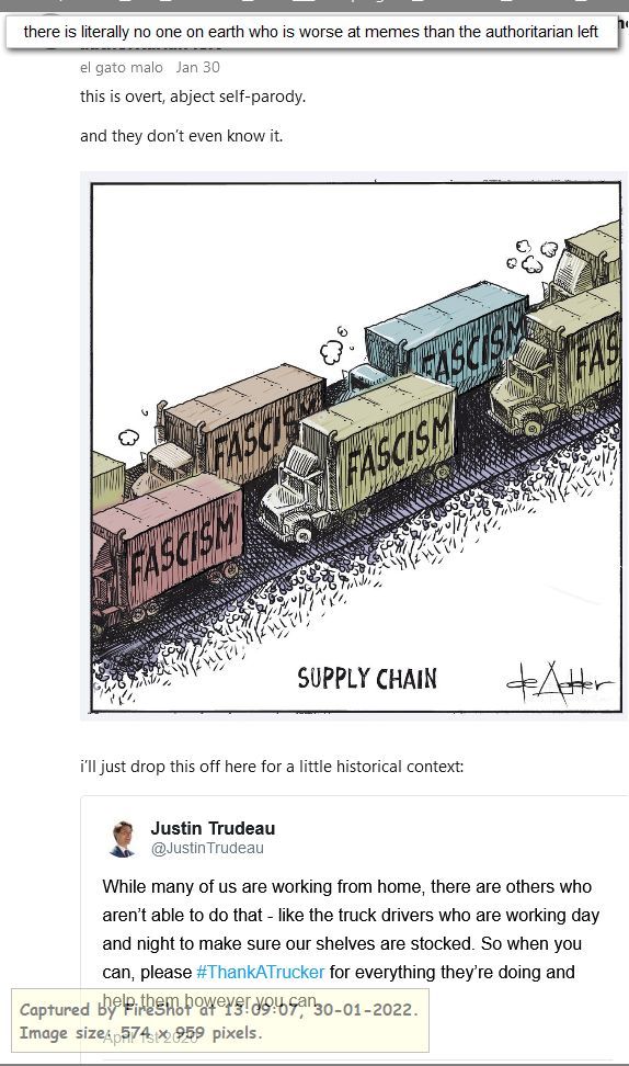 What irony? There’s nothing these sell-out globalist worshiping leftist ministers hate and fear more than an actual working-class uprising, let’s go Canadian Truckers…