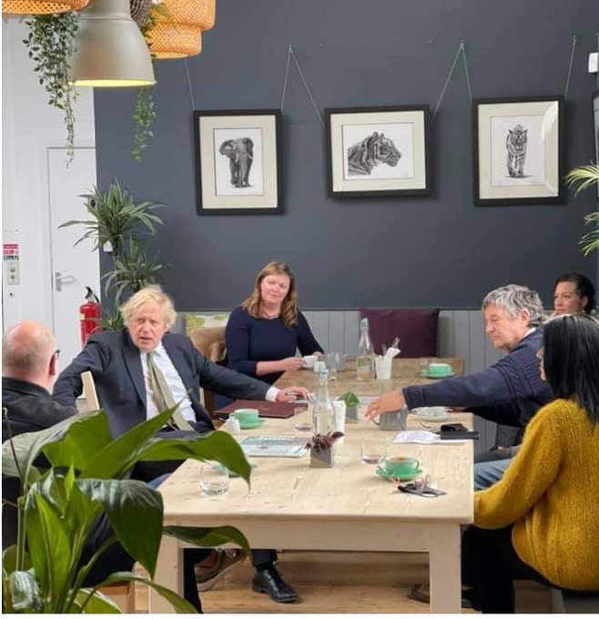 “Here’s where BoJo has been this morning. Truro…in a Café! No social distancing, no masks, more than two households, indoors! One rule for us and one for him! Photos were quickly removed from the FB page which posted them. Why was that?”