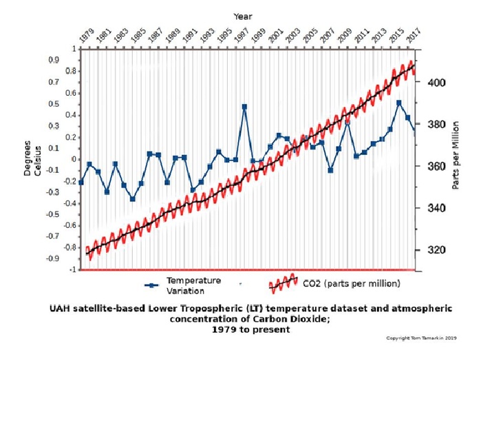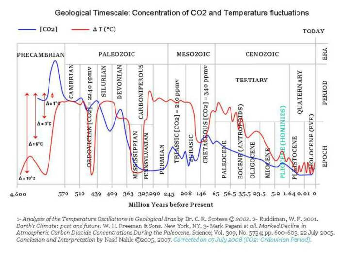 Meanwhile, the illustration attached displays no direct relationship between atmospheric CO2 and global temperatures.