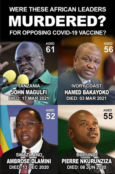 How many African and Third World Leaders who opposed the “Covid PCR and vaccine Narrative “died suddenly”?