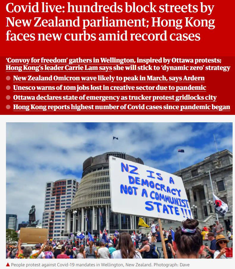 They’ve also inspired the same in Canberra and Wellington (and other places). Not that the MSM will want to draw attention to the spread, so if ”all eyes are on Ottawa” that will take the eyes off the brutal police state of Australia. (See Avi Yemini of Rebel News.)