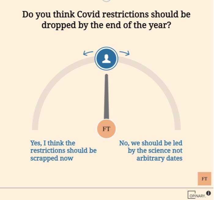 What if ‘The Science’ says that masks are useless, lockdowns are useless, and it’s past time to lift restrictions? What if the science has been saying for many weeks now (at least) that the pandemic is no longer serious? What if the science says that lockdown is leading to huge harms to health, economic damage etc.? Possibilities apparently not permitted at the FT.