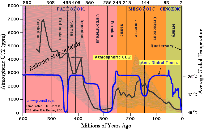 This chart has been going the rounds for decades. It is utterly irrelevant because it is on a scale of 100s of millions of years. Over those timescales factors such as changes in the earth’s orbit, continental drift and even the Cambrian explosion play an enormous role but they do not change in timescales that interest us.