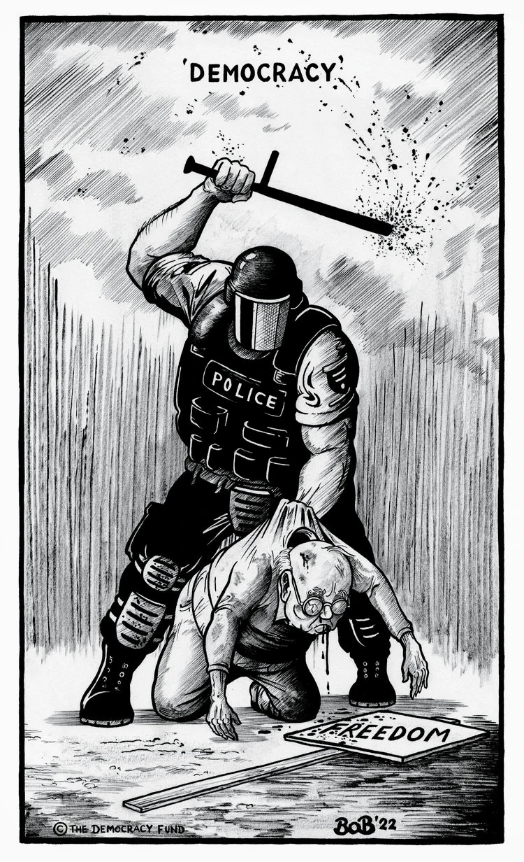 That photo of a police”man” with his hands on that young person’s head just shows what they’re up against. I hope he can be identified. The poor training and gratuitous violence is disgusting.