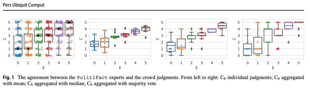 Perhaps inevitably, this journal has also published “Can the crowd judge truthfulness? A longitudinal study on recent misinformation about COVID-19“. This is one of a series of studies that asks pay-per-task workers on Amazon Mechanical Turk (defined as “the crowd”) to answer questions about Covid and U.S. politics. Their answers are then compared to the “ground truth” of “expert judgements” found on … Politifact (see chart below). As well as being irrelevant to the journal, this exemplar of good science had a sample size of just 10 survey takers despite requiring a team of nine academics and support “by a Facebook Research award, by the Australian Research Council, by a MIT International Science and Technology Initiatives Seed Fund and by the project HEaD – Higher Education and Development – (Region Friuli – Venezia Giulia)”. The worthlessness of their effort is, naturally, used as a justification for doing it again in another paper – “having a single statement evaluated by 10 distinct workers only does not guarantee a strong statistical power, and thus an experiment with a larger worker sample might be required to draw definitive conclusions”.