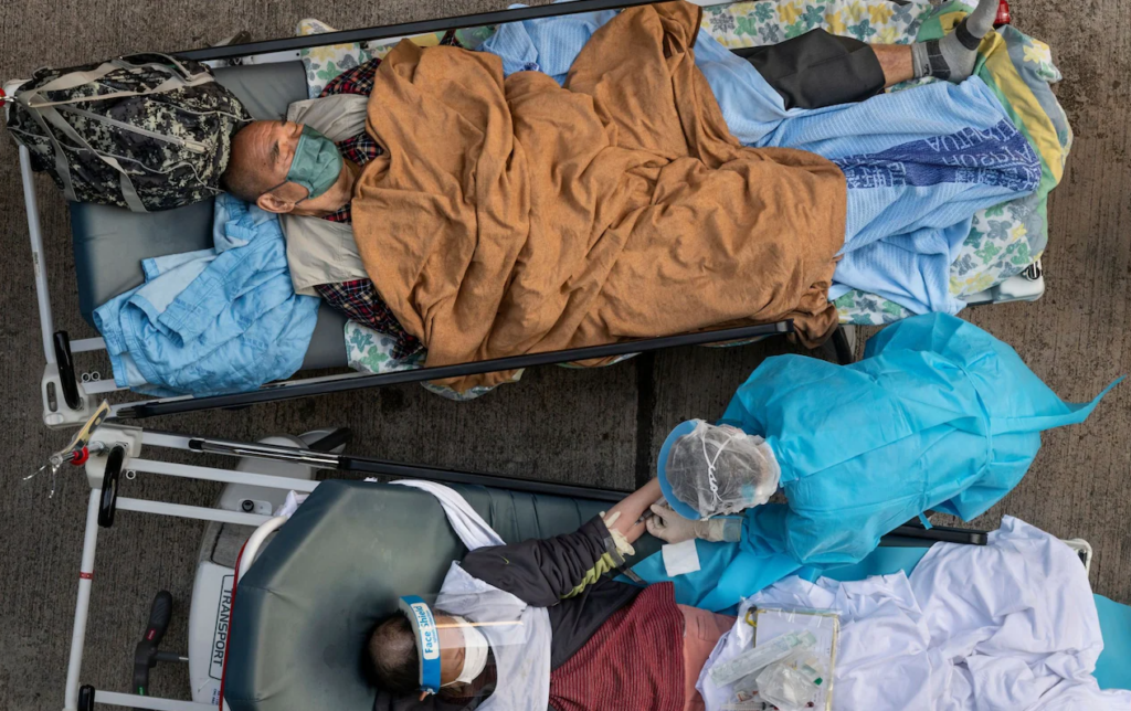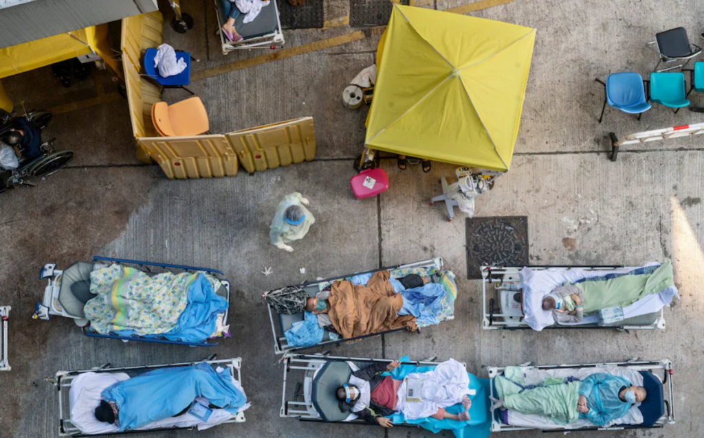 On Tuesday Carrie Lam, Hong Kong’s Chief Executive, warned that a fifth wave of infections has “outgrown our capacity”, as dramatic photos emerged showing dozens of patients waiting for care on medical beds outside A&E departments.