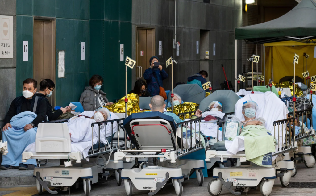 It’s being reported that Hong Kong’s hospitals are at capacity and overflowing with patients during the current Omicron wave. For example, Sarah Newey (from the Gates-funded Global Health Security team) at the Telegraph writes: