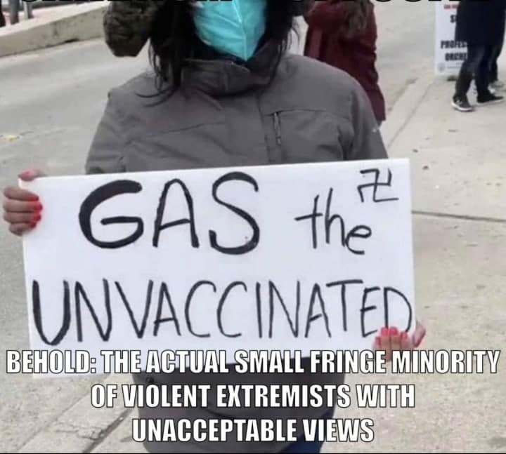 It’s not just unvaccinated, but anybody with opposing views to the narratives of the globalist agenda, are labelled as right wing extremists, mysogynists, racists, conspiracy theorists, anti vaxxers. Even when it’s clear for all to see that this is a complete fabrication.