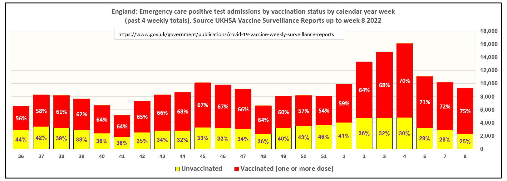 And now down to 25% of +ve SARS-C0V-2 test emergency care admissions in the unvaccinated and 75% in the vaccinated (any dose).