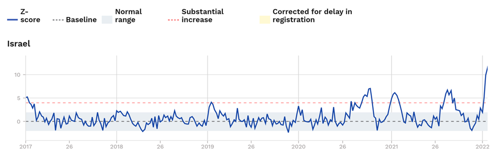 I’ll start off this week with data not from the latest UKHSA Vaccine Surveillance Report, nor even from the U.K. – the first chart for today shows the excess deaths in Israel since 2017 for those aged 65 or over. Just something to think about and I’ll come back to it at the end.