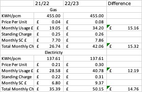 A year ago, I was paying £60 pm fir gas and electric on my fixed rate. That ended in August. The best deal I could get was £98pm. My supplier then went bust, I was moved to another.