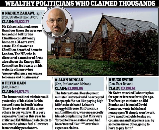 A good way to get electricity on the cheap would be to run a cable from Zahawi’s horses’ stables to your own house.