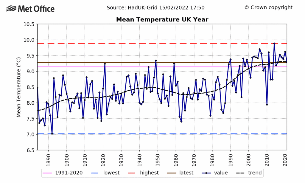 Thanks for the reply Chris, I appreciate you taking the time to do it. I am assured that you can see the trend line is up. Likewise I can see that February 22 figure is the same as the one 88 months ago. But it is not a flat line between the dates, it has been consistently hotter for every measurement made. I would not contests the 2 facts you have highlighted, only on the conclusion that is drawn from them. These are two very cherry picked dates. Pick another two dates and you can show warming, (or cooling depending on bias) So the supposition that these two points represents a long term flat line requires evidence.