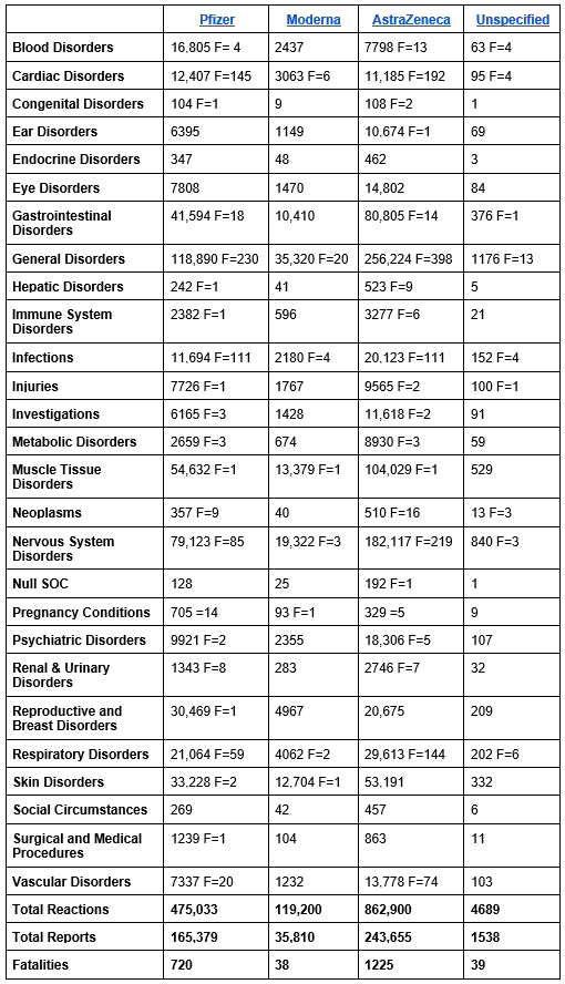 According to an updated report published on February 16th, the MHRA Yellow Card reporting system has recorded a total of 1,461,822 events based on 446,382 reports. The total number of fatalities reported is 2,022.