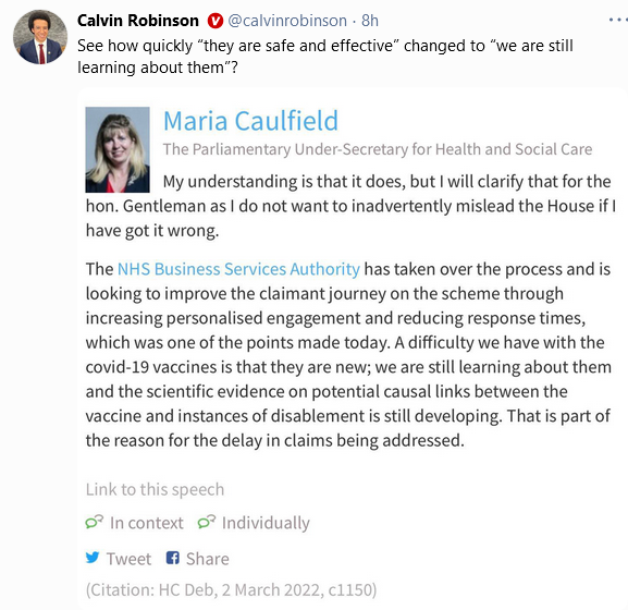 If it is the case that “we are still learning about them” then there was NEVER ANY JUSTIFICATION FOR MANDATING THEM FOR CARE WORKERS OR NHS STAFF. IF ANYTHING THEN IT SHOULD ONLY HAVE EVER BEEN A MATTER OF PERSONAL CHOICE.