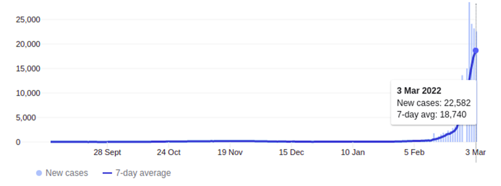 New Zealand. After two years of New Zealand imposing one of the harshest lockdowns in the world and vaccinating a very high proportion of the population (some under mandate), it’s now suffering its first real Covid wave.