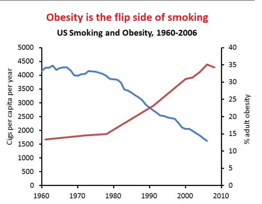It didn’t make the point that the number of obese has risen greatly, while smokers have declined in number.
