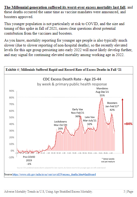 Ed Dowd, the former BlackRock fund manager, has more eye-opening revelations. According to research by a silent partner of his (an expert in actuarial accounting), there were 61,000 “excess deaths” among Americans age 25 to 44 in the last part of 2021.