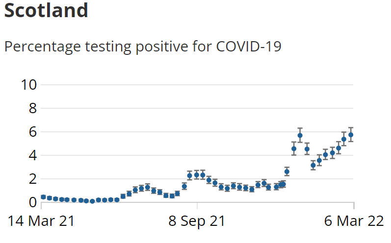 Or perhaps Mr. Javid was referring to the end of Plan B restrictions (mask mandate and vaccine passports) on January 27th? However, Scotland still hasn’t lifted these measures, and its infection rate rose earlier and faster than England’s.