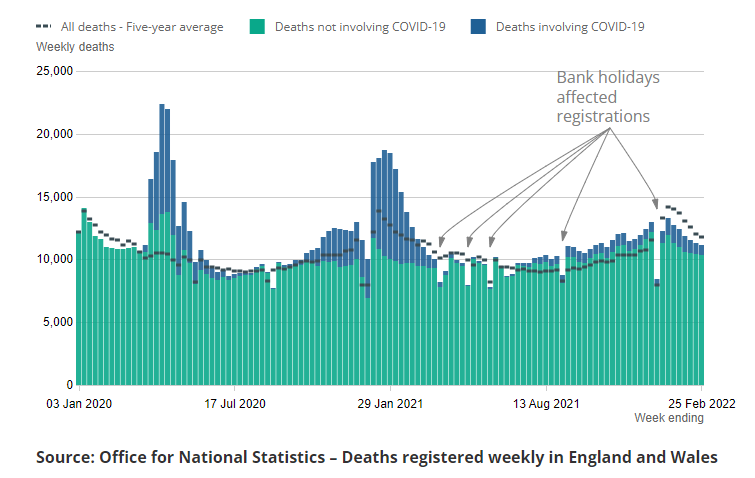 As infections rise again, it’s worth keeping in mind that deaths have been running below average all winter and remain so, meaning that actually we should stop worrying about what Covid infections are doing altogether as the disease is, to quote the Danish Government, not “socially critical”.