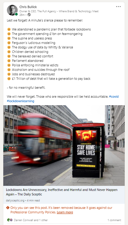 Well sharing this article lasted about 5 mins before it was removed by LinkedIn: