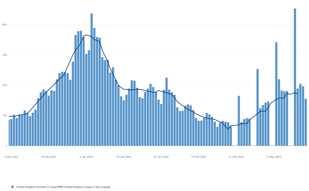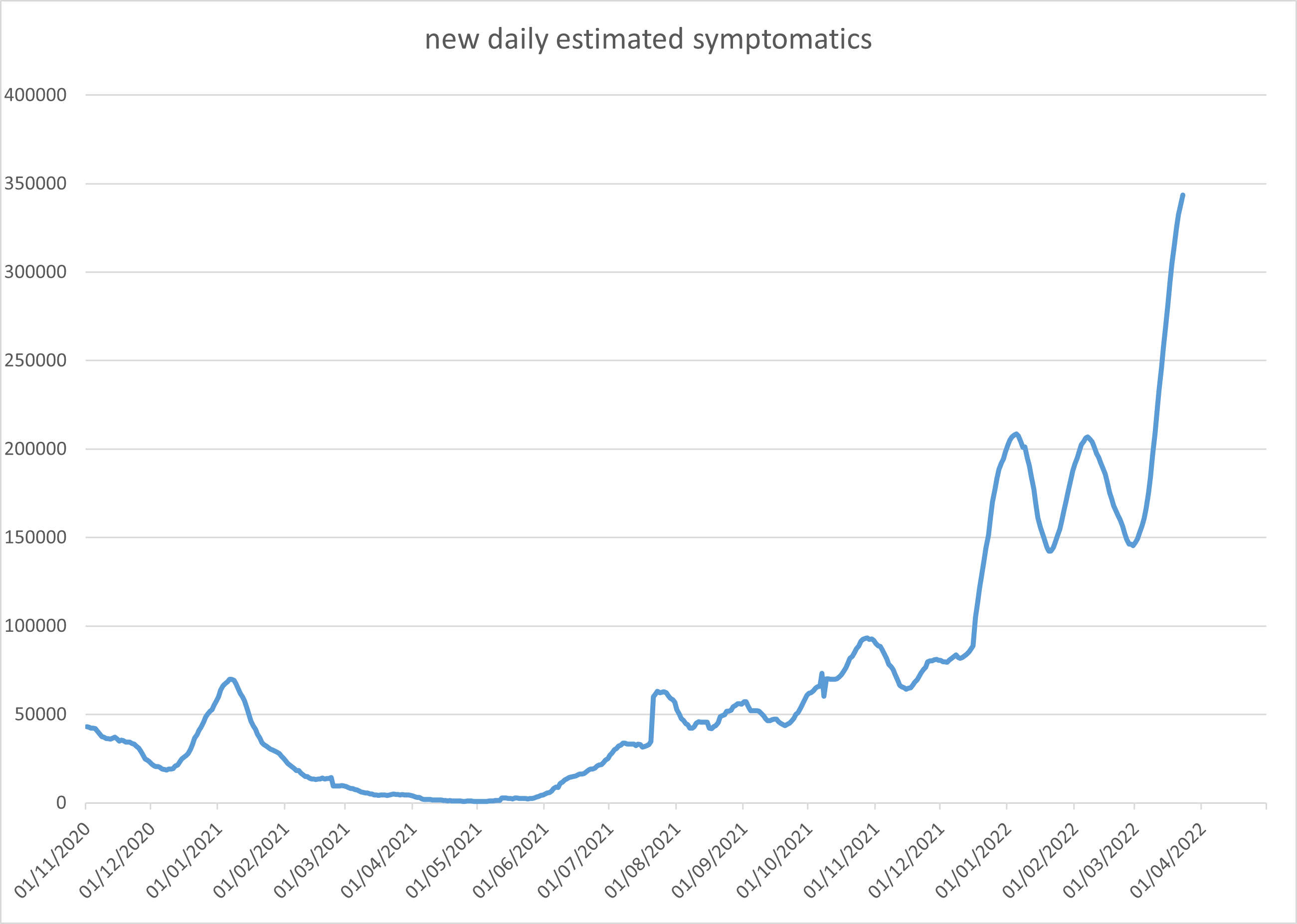 Swab tests suggest about one in every 16 people is infected, as the contagious Omicron variant BA.2 continues to spread. That’s just under 4.3 million people, up from 3.3 million the week before. The figures for the week ending March 19th, are thought to give the most accurate reflection of what’s happening with the virus in the community.