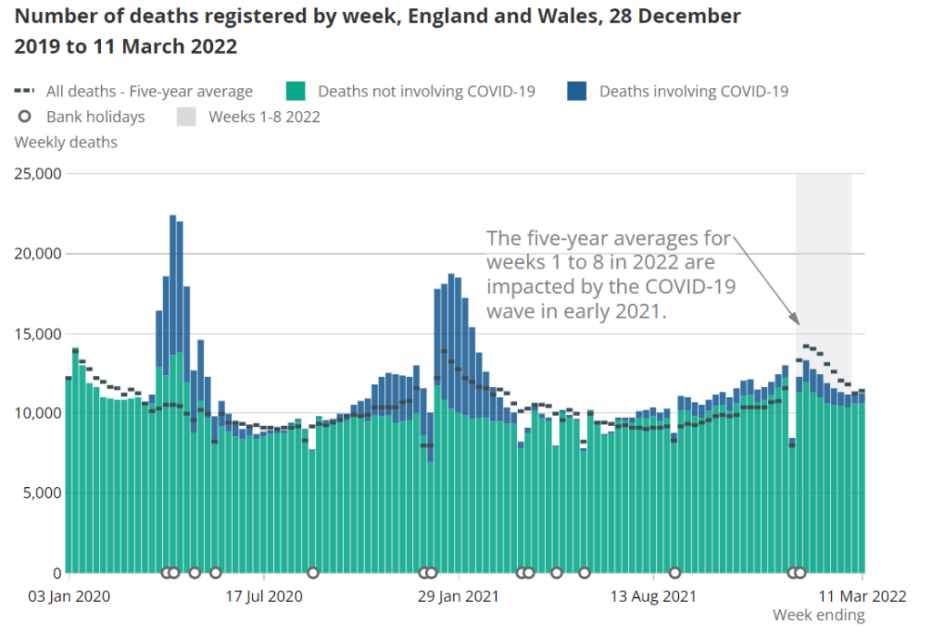 Most importantly, deaths have been below average throughout the winter, owing primarily to the mild Omicron Covid variant and the absence of flu.