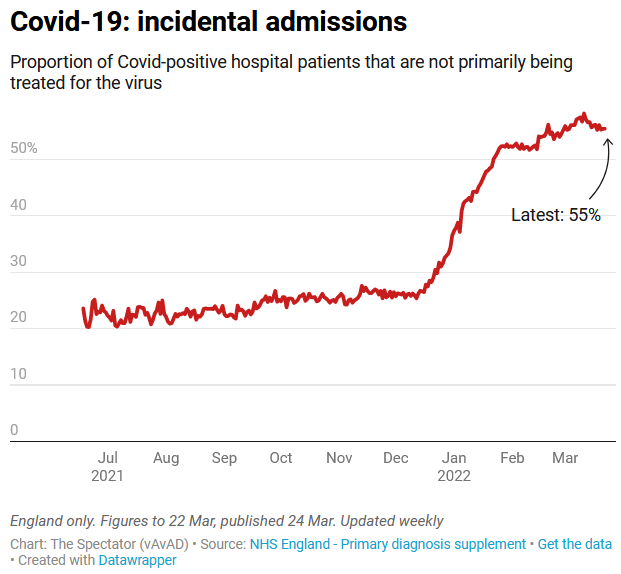 “According to the latest figures, there were 16,975 patients in hospital with the virus on March 23rd. About half will have been admitted for something else, rather than Covid, but tested positive.”