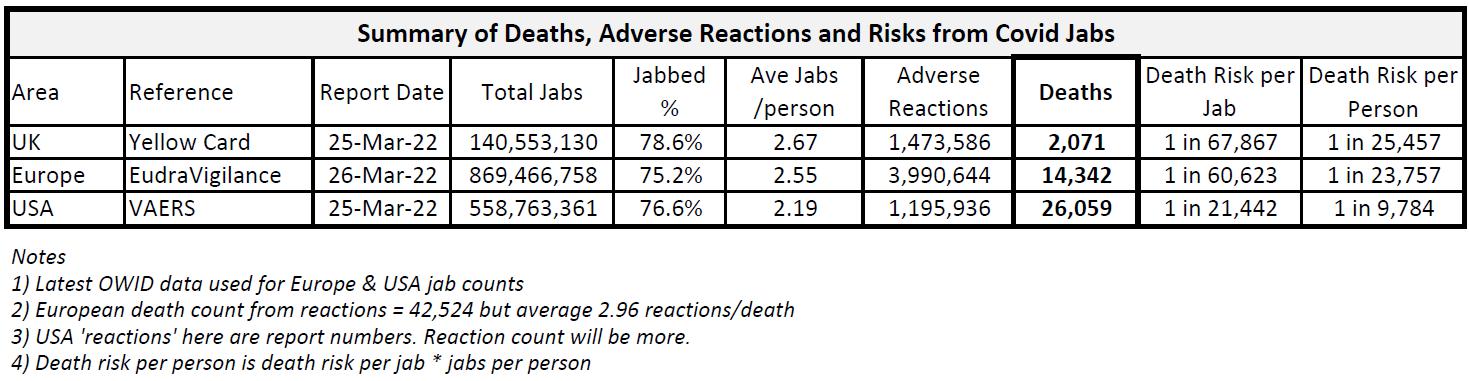 Thanks for asking. The reason is because there is Team James and Team Tobey. Team Tobey believes, what was it, that ‘vaccines are one of the greatest contributions to humanity of medical science’. Woop-de-whoo. So when you hold that baseline opinion, untroubled by the historical reality of the real impact of vaccines, then you are desperate to not come across as ‘anti-vaxx’. Because science. So. Even though this particular vaccine is a nightmare for humanity, decent people on Team Tobey still would rather not be caught out appearing to have a primitive attitude here to the miracle of vaccines. So every couple of weeks, when these reports come out, they fish out the boilerplate and bolt it to the front of this parade of ugly data, just to make sure that no one wandering by mistakes the editorial team for Team James. That’s the real reason. In reality, there should be no reason whatsoever to discourage anyone from taking these vaccines: they are unnecessary, they don’t work, and they are flashing red on the safety signals. Don’t take the vaccine.