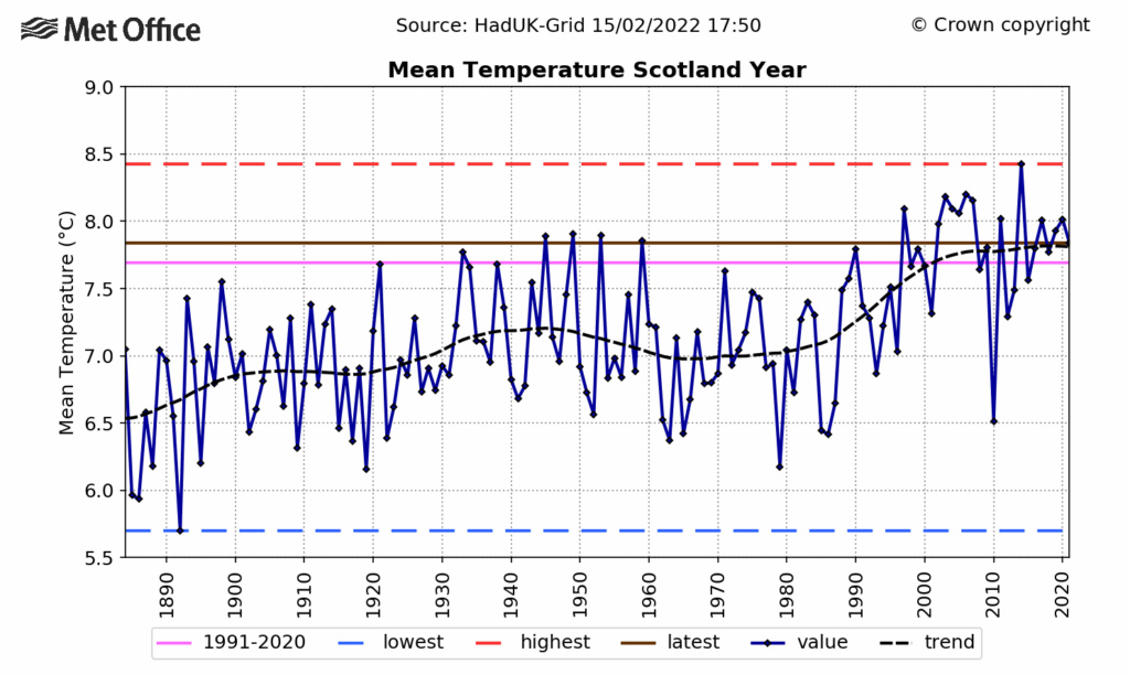 Even less well than Scotland it would seem. The average temperature in Northern Ireland has barely moved for two decades.