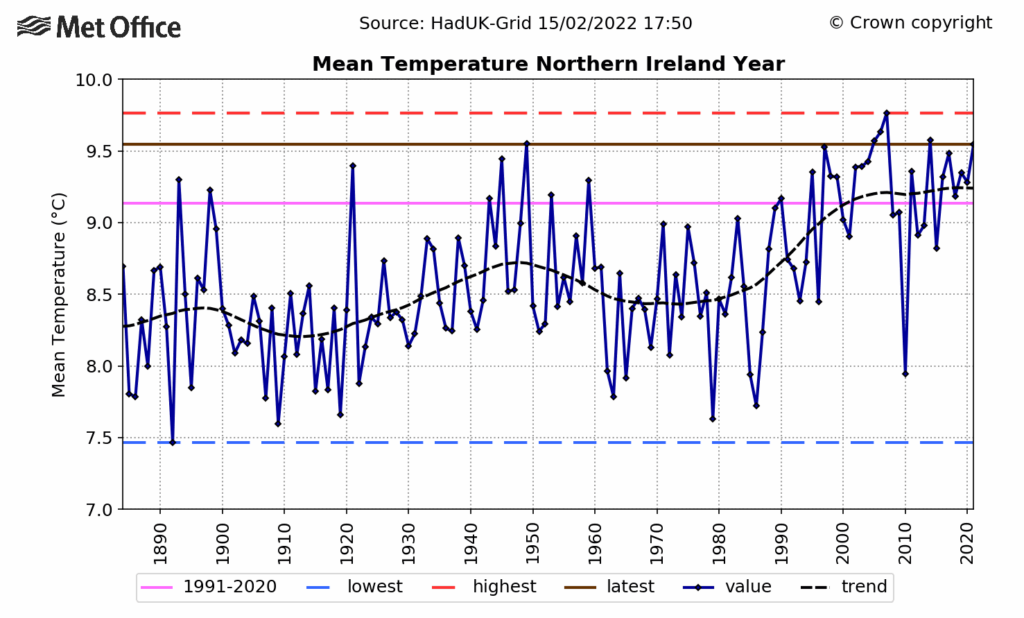 Let’s see how the 0.7°C stands up against the actual average temperature in Northern Ireland.