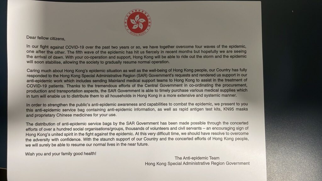 It is surely relevant to note that the authors of the study reported in PLOS One were from mainland China and that the studies included in the meta-analysis, regardless of the poor methodology in both studies included and in the meta-analysis itself, were both published by Chinese authors. It is not possible to ascertain the quality of the journals where the studies are reported as, remarkably, they are not listed in the reference list. It is also relevant to note that TCM is officially pushed as policy by the Chinese Government, despite the general lack of evidence for efficacy. However, the Chinese Government has that angle covered as it has a law that prevents criticism of TCM. The Chief Executive of Hong Kong, Carrie Lam Cheng Yuet-ngor, a Chinese Government approved appointee, also said: “The Government was open to the idea of giving part of its stockpile of oral antivirals to private clinics, which would join private hospitals in distributing the pills to infected residents.” The ‘antivirals’ (not demonstrated to have any such action) to which she refers are the traditional Chinese medicine LQJ. In the letter accompanying the Hong Kong Covid kit, in a typical act of Hong Kong Legislative Council arslikan, the Anti-Epidemic Team Hong Kong SAR says: “Thanks to the tremendous efforts of the Central Government in co-ordinating the procurement, production and transportation aspects, the SAR Government is able to timely purchase various medical supplies…”