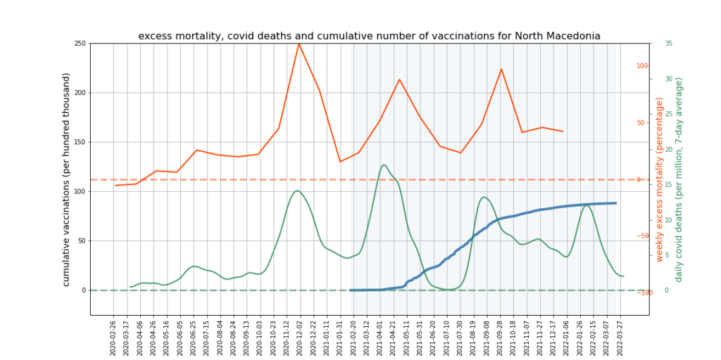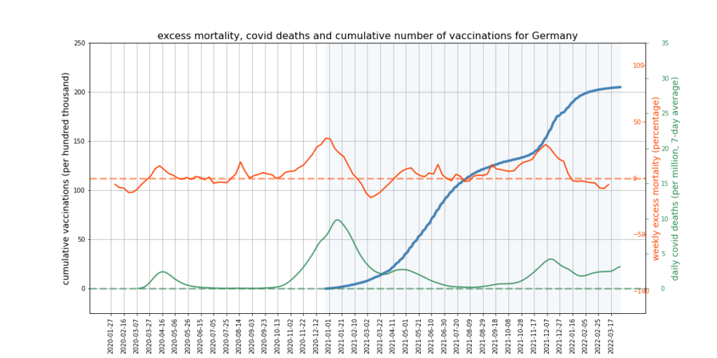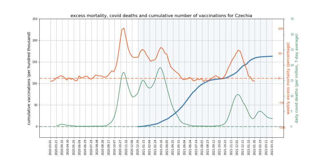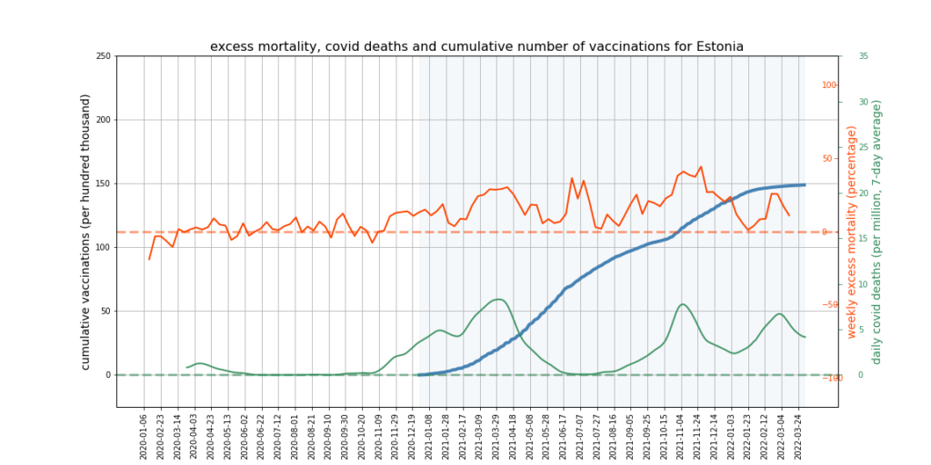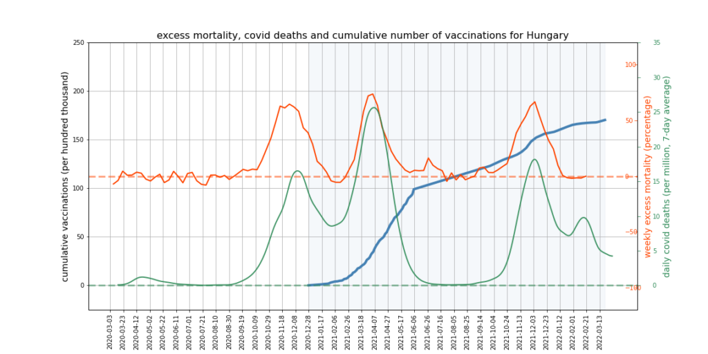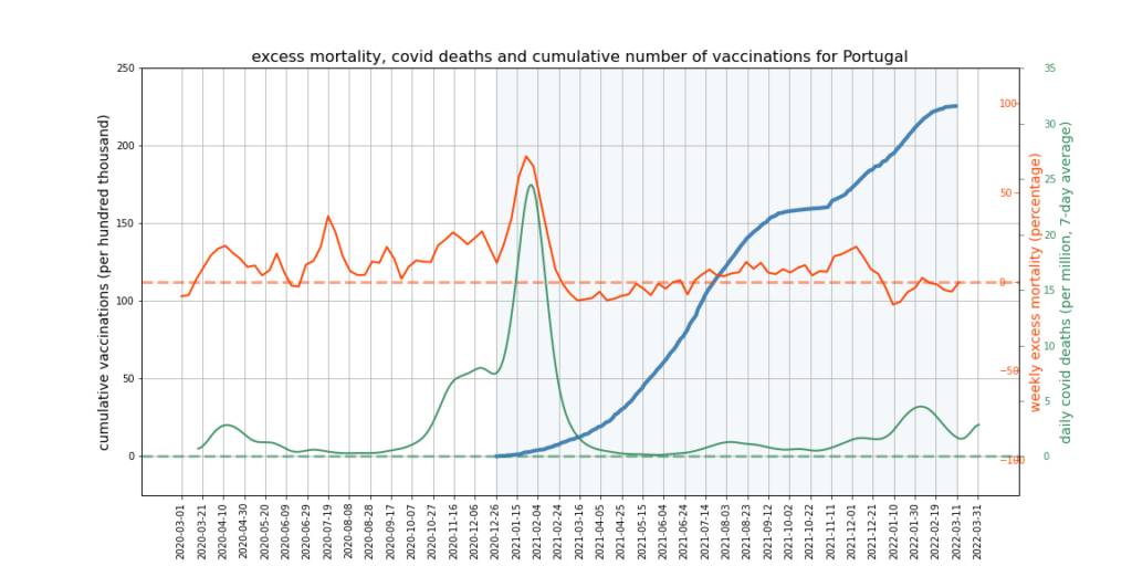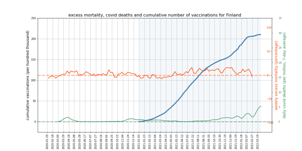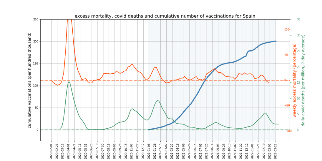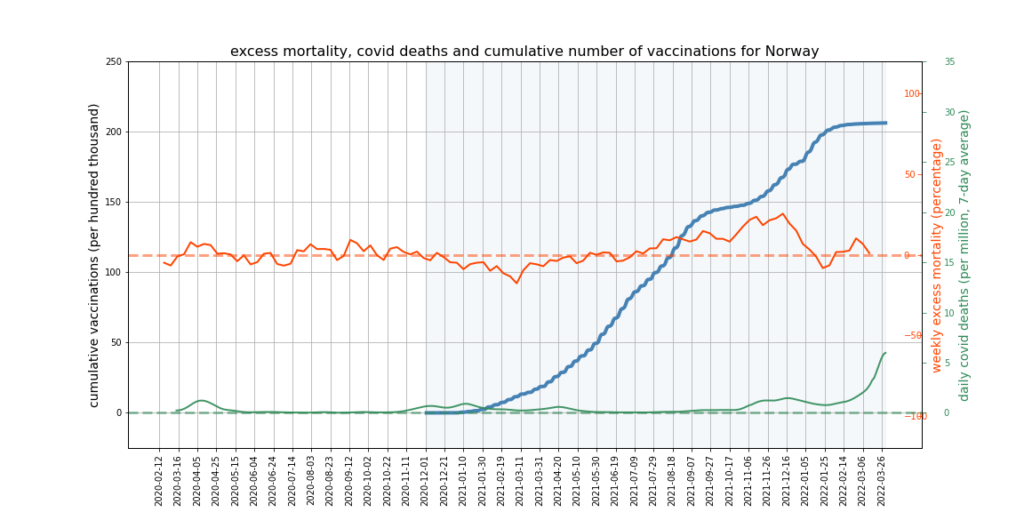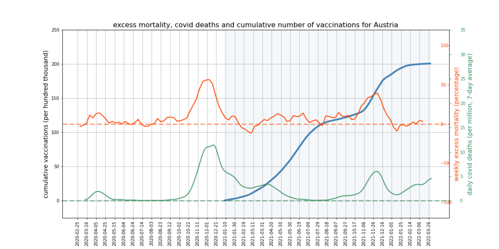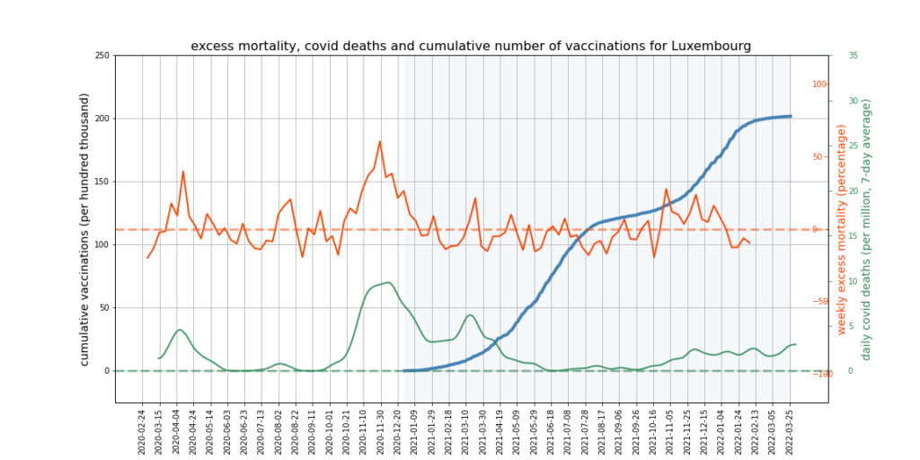 It appears there is a limit to what we can expect this kind of mortality analysis to show. More sophisticated analysis might try to adjust for the impact of Covid deaths and mortality displacement on excess deaths, and would break down the data by age and take cause of death into account. However, it’s not obvious that this kind of analysis could succeed in accounting accurately for all relevant factors, or would not become overly dependent on questionable assumptions – such as that all ‘Covid deaths’ are deaths from Covid, or what the correct extent of mortality displacement is.