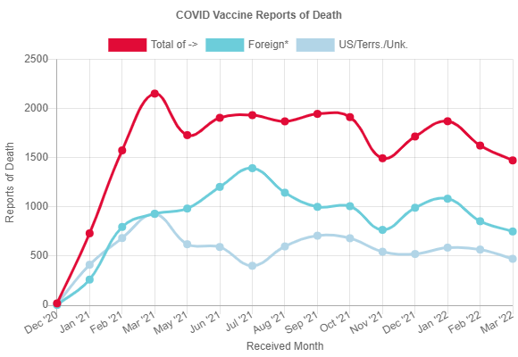 Another way of saying the same thing is that 20,000 U.K. vaccine deaths spread over 15 months works out at around 300 deaths per week, which is only a small percentage (3%) of the around 10,000 deaths per week that normally occur in the U.K. That kind of signal (10,300 instead of 10,000) will easily be lost amid Covid waves and mortality displacement as well as deaths resulting from lockdown and lack of access to healthcare. Even if some of the deaths bunch up around certain points in the rollout, such as when older people are receiving large numbers of doses, the numbers are still relatively small compared to weekly ordinary mortality (even if they are shockingly large in the context of vaccine injuries). It’s also worth noting that VAERS data show Covid vaccine death reports spreading quite evenly throughout the rollout.