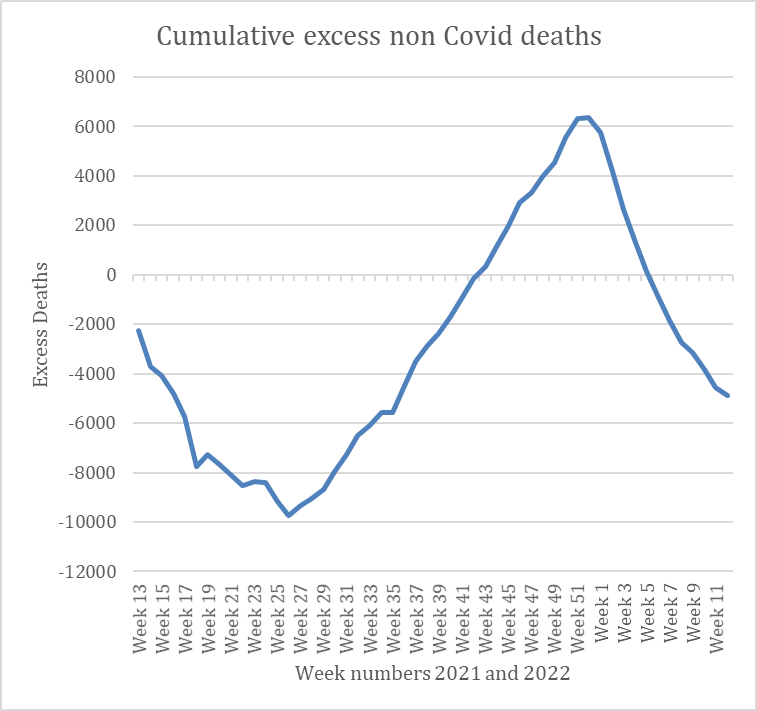 That represents around 10,900 deaths. I therefore amortised this over the period and added it to the non-Covid mortality data.