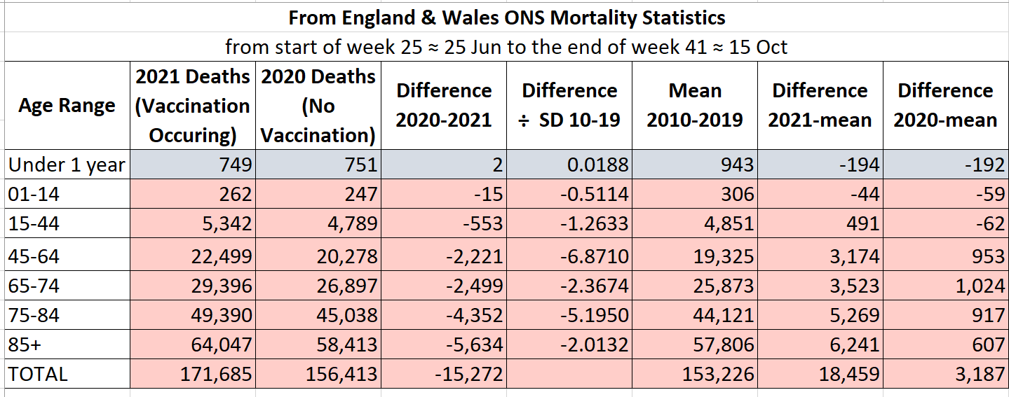 Missing table for my previous comment weeks 25-41 comparison of all cause mortality in 2020, 2021 and the 10 years before.