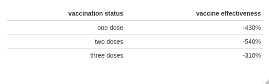 Perhaps they used the same ‘trick’ as was used by the UK data manipulators, only counting booster 14+ days as triple vaccinated, and putting any hospitalisation/deaths of people less than 14 days in the double vaccinated group.