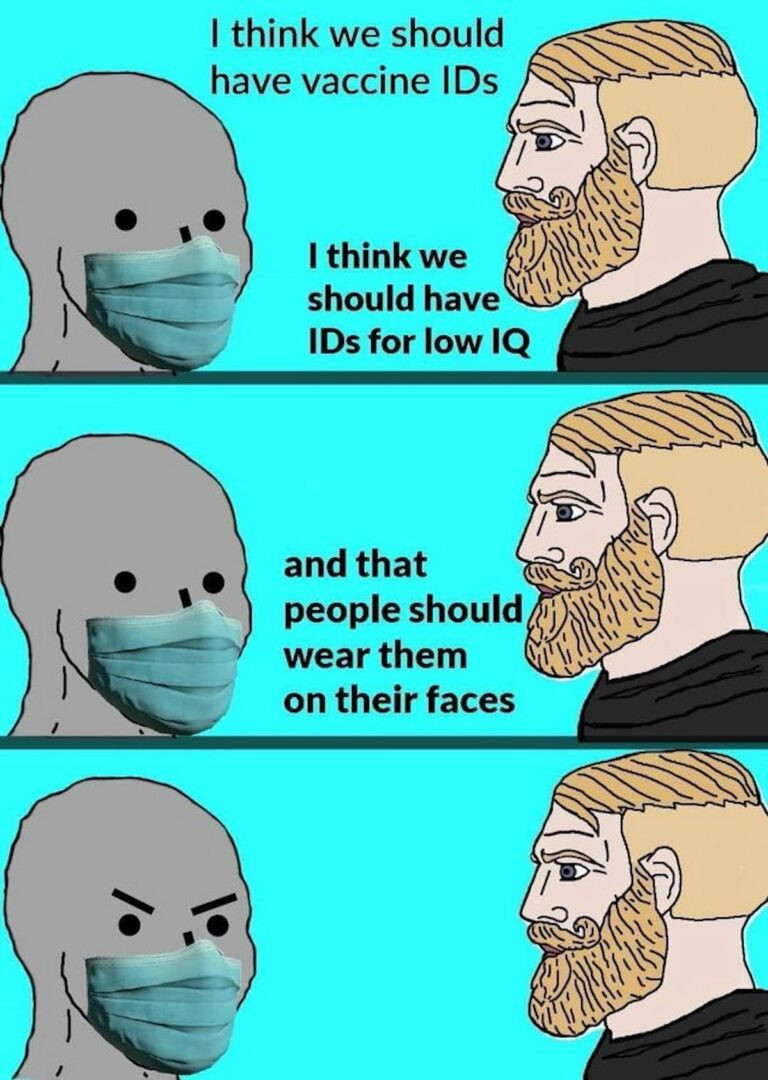 There you go – advertising campaign. Posters all over the place saying: “People who wear face masks for Covid are of low intelligence.”